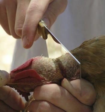 Shechita (kosher slaughter) of a chicken. Credit: Yofial via Wikimedia Commons.