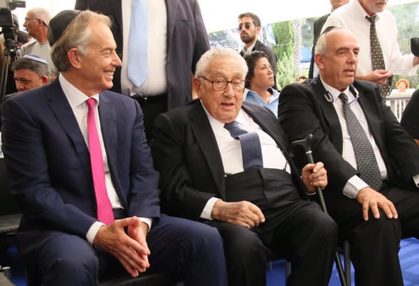 Tony Blair, Henry Kissinger, Yoni Peres Photo: Yosef Av Yair Engel