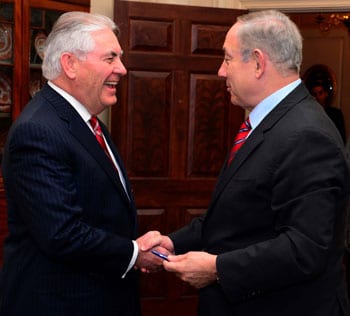 Prime Minister Benjamin Netanyahu meets with United US Secretary of State Rex W. Tillerson in Washington, D.C., on Feb. 15, 2017.