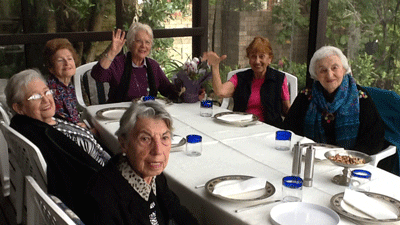 Around the table l-r: Ilonka Blair, Judith Handley, Eva Reed, Lexie Keston. Ana Deleon , and Lea Farkas