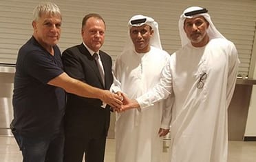 Israeli judo official Moshe Ponte, International Judo Federation President Marius Vizer and UAE judo officials meet on Oct. 28 in Abu Dhabi. Credit: International Judo Federation via Twitter.