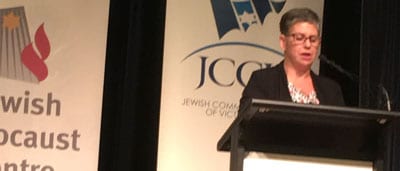 Other speakers included Jennifer Huppert, President of JCCV and the JHC Co-Presidents Pauline Rockman and Sue Hampel, and DFAT diplomat and Holocaust historian Dr Lachlan Strahan who spoke about the International Holocaust Remembrance Alliance (IHRA).