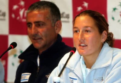 Israeli tennis player Shahar Pe’er at a 2008 press conference with other members of the Israeli team prior to their Fed Cup match against Russia in Tel Aviv. Credit: Roni Schutzer/Flash90.