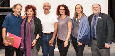 Arnold Zabel (guest speaker, Paluine Rockman (co-President of JHC), Jeffrey Kelson (Artist), Sue Hampel (co-President of JHC), Janye Josem (JHC Curator), Warren Fineberg (JHC Executive Director)