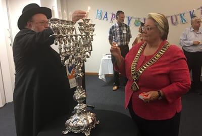 Rabbi Pinchus Feldman and Mayor Sally Betts