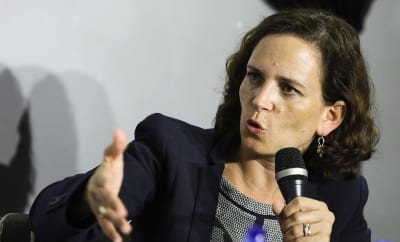 Knesset member and mayoral candidate Rachel Azaria speaks during a cultural event at the First Station Compound in Jerusalem on July 25, 2018. Photo by Noam Revkin Fenton/Flash90.