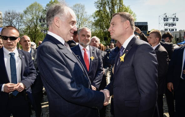 WJC President Ronald S. Lauder and Polish President Andrzej Duda at the commemoration of the 75th anniversary of the Warsaw Ghetto Uprising on 19 April 2018. Photo: Shahar Azran