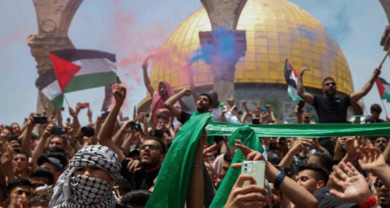 Palestinian protests on the Temple Mount in Jerusalem on May 21, 2021. Photo by Jamal Awad/Flash90.
