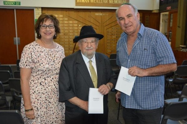 His successor at the PHC, Rabbi Dovid Freilich addressed a community function relating the long history of Rabbi Coleman’s achievements. Rabbi Freilich has also returned and his success Rabbi Dan Lieberman joined Michael Hodes, Aviva Freilich and Rabbi Coleman’s daughter Romaine Kaufman in paying tribute to the centenarian