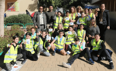 Participants giving children at Sha’ar HaNegev primary school greeting cards written by children from Australian Jewish Day Schools