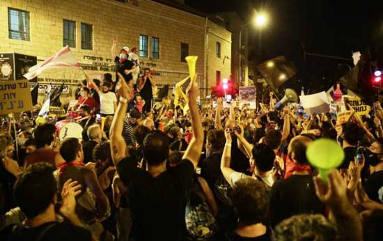 Anti-Netanyahu demonstrators in Jerusalem. (Yehonatan Valtser/TPS)