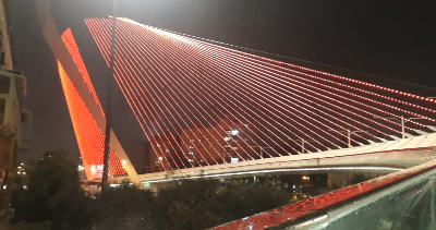 Jerusalem’s Chord Bridge is lit in red in solidarity with the International Day for the Elimination of Violence Against Women. (Photos by Hodaya Kalman/TPS)