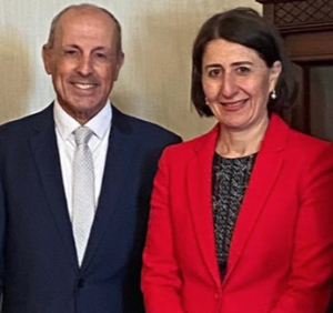 Vic Alhadeff with NSW Premier Gladys Berejiklian, who recently presented him with the Premier’s Award in recognition of his work advancing harmony across civil society.