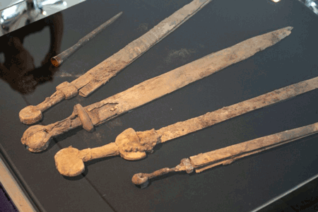 The swords had well-fashioned handles made of wood or metal. The length of the blades of the three swords was 60–65 cm, their dimensions identifying them as Roman spatha swords. The fourth one was shorter with a c. 45 cm long blade, identified as a ring-pommel sword.