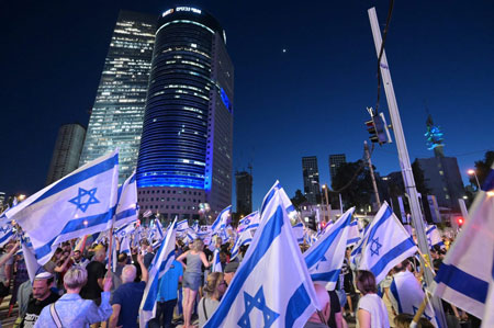 Israelis protest against the government’s controversial judicial reform initiative in Tel Aviv on July 11, 2023. Photo by Yossi Zeliger/TPS