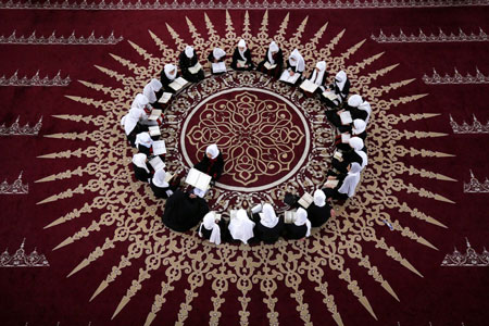 Muslim girls study the Koran during a summer camp at a mosque in Gaza City on June 13, 2023. Photo by Majdi Fathi/TPS