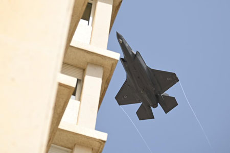 An Israeli Air Force jet flies over Jerusalem while practising for the annual Independence Day flyover on April 19, 2023. Israel celebrated its 75th anniversary on April 26. Photo by Yoav Dudkevich/TPS