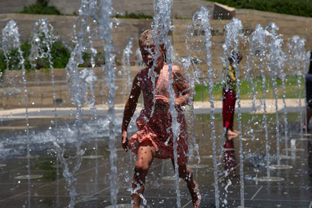 Children play in a Jerusalem water park during a heat wave on July 12, 2023. Photo by Kobi Natan/TPS