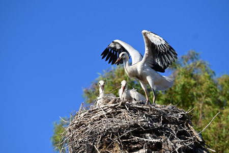 A family of storks nesting in the Golan Heights, northern Israel on June 27, 2023. Photo by Meni Tzuberi/TPS