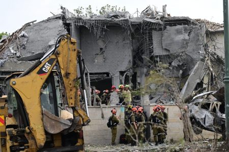 Israeli emergency responders at the scene of an Iranian missile fall in Ness Ziona in the aftermath of a barrage on June 21, 2025. Photo: Yossi Zeliger/TPS-IL