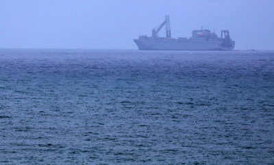 The US Navy logistics vessel Roy P. Benavidez off the coast of Gaza on April 27, 2024. Photo by Majdi Fathi/TPS