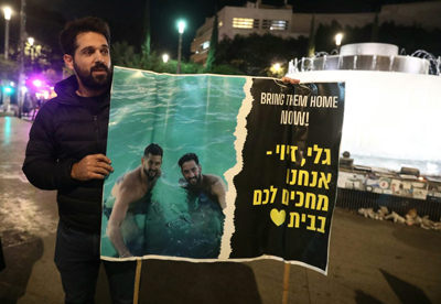 Friends and relatives of Israeli hostages rally in Tel Aviv on Jan. 9, 2025. Photo by Gideon Markowicz/TPS-IL