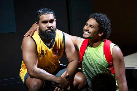 Tibian Wyles and Ngali Shaw star in the MTC’s new footy centric production 37, in which racism is front and centre