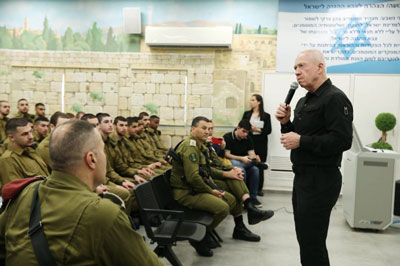 Israeli Defense Minister Yoav Gallant meets with new army inductees in Ramat Gan on April 8, 2024. Photo by Gideon Markowicz/TPS