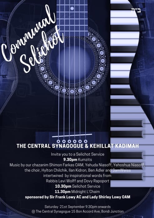 For the first time, two major congregations in Sydney’s Eastern Suburbs are to join forces in hosting a community Selichot.