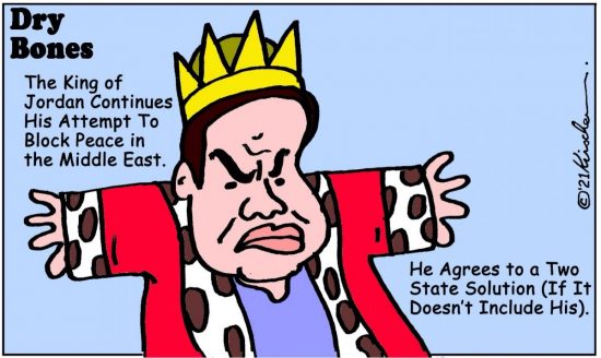 Author’s note: The cartoon – commissioned exclusively for this article — is by Yaakov Kirschen aka “Dry Bones”- one of Israel’s foremost political and social commentators – whose cartoons have graced the columns of Israeli and international media publications for decades. His cartoons can be viewed at Drybonesblog
