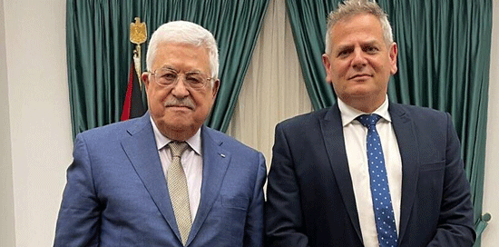 Palestinian Authority leader Mahmoud Abbas (left) with Israeli Health Minister and Meretz head Nitzan Horowitz at the Muqata in Ramallah, Oct. 3, 2021. Source: Twitter.