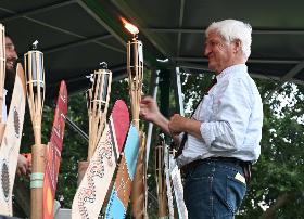 North Queensland MP Bob Katter holds a candle at a Menorah-lighting event in Cairns