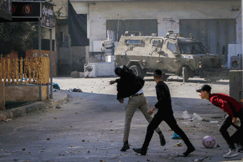 Palestinians attack Israeli security forces during a raid in Jenin on Jan. 26, 2023. Photo by Nasser Ishtayeh/Flash90.