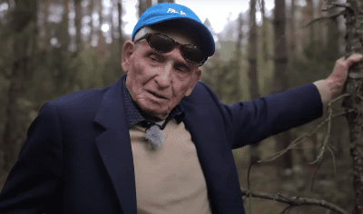 Aron Bielski visiting the location in modern-day Belarus where he and his brothers fought the Nazis and other pro-German forces during World War II. Source: Screenshot