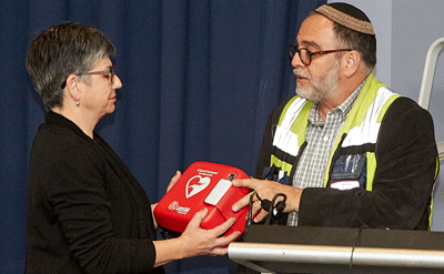 An automated external defibrillator (AED) unit has been presented to the Jewish Community Council of Victoria (JCCV) as part of Hatzolah’s ‘Start the Heart’ project initiated and funded by Gandel Philanthropy.