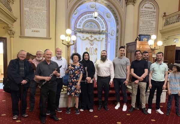 From there, the group continued strolling and chatting towards East Melbourne Hebrew Congregation. On entering the synagogue participants were greeted by the sounds of soulful clarinet playing, and then by Rabbi Dovid Gutnick. He welcomed everyone with warmth and humour, proceeding with an explanation of the layout of the shule.