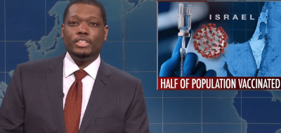 Those who saw the most recent episode of “Saturday Night Live” heard comedian, chief writer and “Weekend Update” anchor Michael Che’s casual claim that Israel’s record vaccination rate has already covered half its population. The butt of the “joke” was when Che quipped: “The Jewish half.” The comment provoked immediate outrage from pro-Israel groups and viewers alike—and not all of them Jewish. Yet predictably, Che’s jibe provoked as much left-wing support for the false assertion cloaked in a humorous review of the news as it did anger. That speaks volumes about the pervasive nature of the antisemitic myths spread by Israel’s enemies about its successful effort to vaccinate its citizens—all of its citizens.