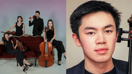 Bennet Tsai was the outstanding first cellist performing with the remaining quartet; Elizabeth Woolnough on viola, who gave the introductory explanation, Eliza Sdraulig, cello and Victoria Bihun, violin.