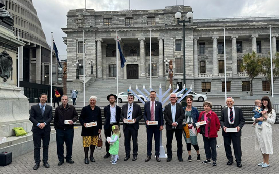 Jeremy Smith, former President of Wellington’s Progressive Temple Sinai congregation, briefly explained the history and meaning of Chanukah and its particular relevance to today’s conflict, and thanked the MPs for their continuing public support for the Jewish community.