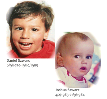 Joshua Szwarc passed in 1984 at the age of 17 months and his brother Daniel passed away in 1985 at the age of 6.