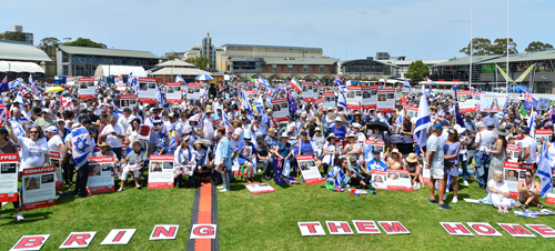 David Ossip, president of The New South Wales Jewish Board of Deputies, retold 5,500 participants at a solidarity vigil in Sydney that 240 human beings are sitting in dark tunnels, disoriented.