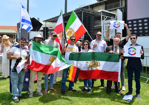 Representatives of other ethnic communities were introduced to the vigil. Standing with Israel were the Indian, Catholic, Chinese, Syrian, Iraqi, Greek and Africa communities. There were flags of countries from which some of the hostages had come. And there were Iranian flags on show.