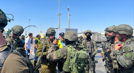 sraeli security forces at the Allenby Border crossing between Israel and Jordan, where three Israelis were killed in a shooting attack by a Jordanian driver on Sept. 8. The bridge is a key spot for Jordanian humanitarian aid deliveries to Gaza. Credit IDF Spokesperson