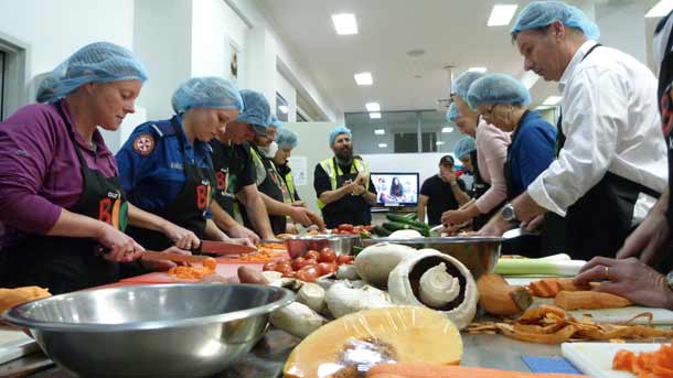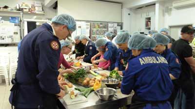 About fifty ambulance officers joined thirty members of the community combined at Our Big Kitchen (OBK) last week to cook for the homeless.