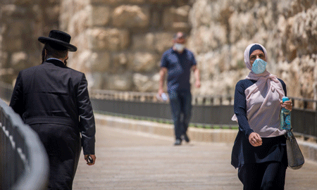 Arabs and Jews walk by the Jaffa Gate of the Old City of Jerusalem, July 5, 2020. photo by Yonatan Sindel/Flash90