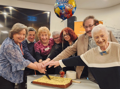JewishCare Friendship Group – Sunday Discussions @ Random organising committee celebrating their 5th Anniversary: L-R: President – President-Tanya Fox, Leon Price, Hilary Katzeff, Jane Chaytor, Shoshana Cochrane, Raymond Garfield, Diane Seeto