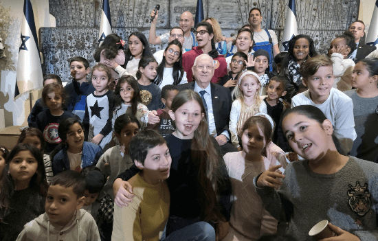 The president welcomed the participants from all around the country who had come to celebrate Chanukah at Beit HaNasi, saying, “Sometimes even adults need a lesson and we need you to show us and teach us that we can work together and be friends, despite our differences. We are all one family, helping and supporting each other, in tough times and in celebrations and happy times. At home, we light Chanukah candles, and the symbol of the State of Israel is a menorah, a candelabrum. On this holiday we hope and pray, and we work hard, that the menorah of the State of Israel will always be lit, shining its light on us and on those around us, bringing light of peace and unity.”