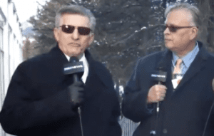 Rick Wiles (left) and TruNews broadcast from the World Economic Forum in Davos, Switzerland on Jan. 21, 2020. Source: Screenshot.