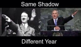 Several antisemitic images were posted. One image compared Netanyahu with Hitler and had the words: “Same shadow, different year”. There was an image of the Israeli flag composed of a skull and crossbones but with the skull wearing a kippah (skull cap) and peot (side curls). Another image has the State of Israel, Arik Sharon and Ehud Barak as pigs. In traditional Islamic literature, Jews are often referred to and portrayed as pigs.