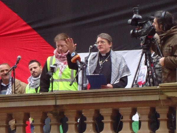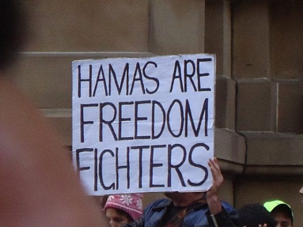 Speakers at the rally included a Greens State MP, David Shoebridge, the Sydney Branch Secretary of the Maritime Union of Australia, Paul McAleer, and a Christian clergyman, Father Dave Smith. All spoke quite happily surrounded by the black flags of jihad, the yellow flags of a banned terrorist organisation, Hezbollah, the Islamist chants and placards spewing antisemitism.